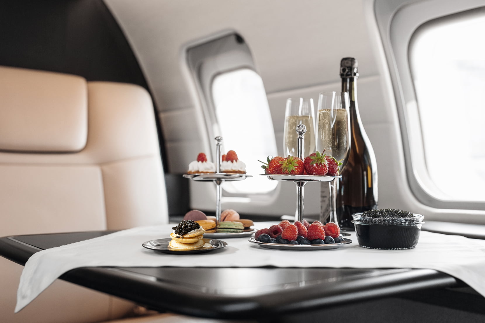 Private Jet: Level up your in-flight dining experience with a selection of fine caviar. Transform your journey into a memorable prelude to your destination.